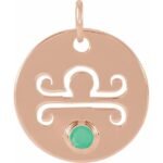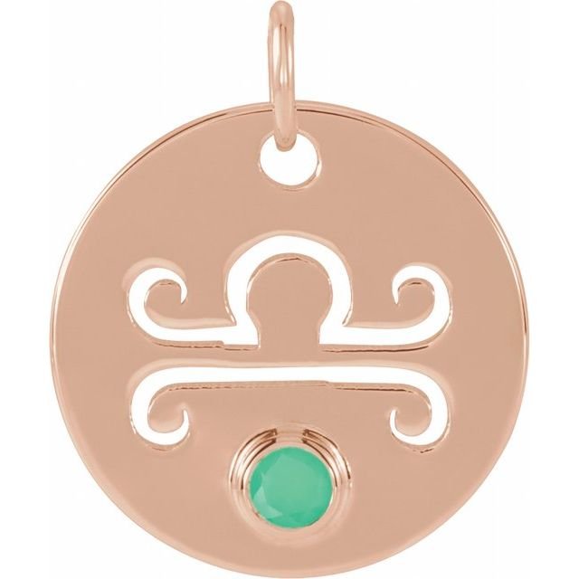 14k Rose Natural Green Chrysoprase Libra Zodiac Pendant