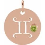 14k Rose Natural Peridot Gemini Zodiac Pendant