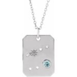 14k White Natural Aquamarine & .01 Ctw Natural Diamond Cancer Constellation 16-18′ Necklace