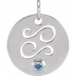 14k White Natural Aquamarine Cancer Zodiac Pendant