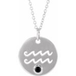 14k White Natural Black Spinel Aquarius Zodiac 16-18′ Necklace