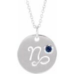 14k White Natural Blue Sapphire Capricorn Zodiac 16-18′ Necklace