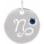 14k White Natural Blue Sapphire Capricorn Zodiac Pendant
