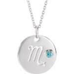 14k White Natural Blue Zircon Scorpio Zodiac 16-18′ Necklace