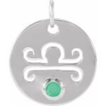 14k White Natural Green Chrysoprase Libra Zodiac Pendant