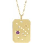 14k Yellow Natural Amethyst & .01 Ctw Natural Diamond Sagittarius Constellation 16-18′ Necklace