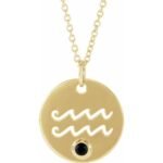 14k Yellow Natural Black Spinel Aquarius Zodiac 16-18′ Necklace