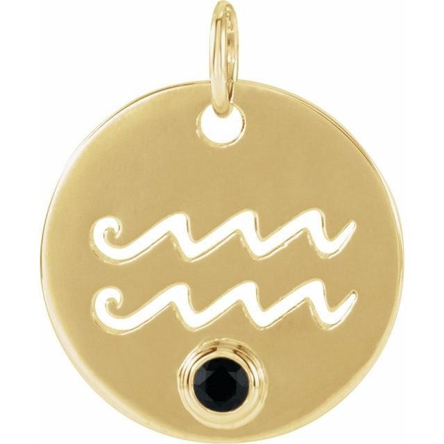 14k Yellow Natural Black Spinel Aquarius Zodiac Pendant