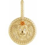 14k Yellow Natural Citrine & .005 Ctw Natural Diamond Leo Charm/pendant