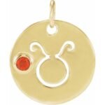 14k Yellow Natural Mexican Fire Opal Taurus Zodiac Pendant