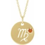 14k Yellow Natural Spessartite Garnet Virgo Zodiac 16-18′ Necklace