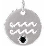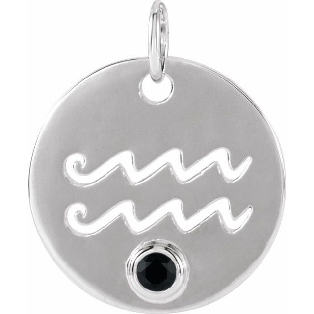 Platinum Natural Black Spinel Aquarius Zodiac Pendant