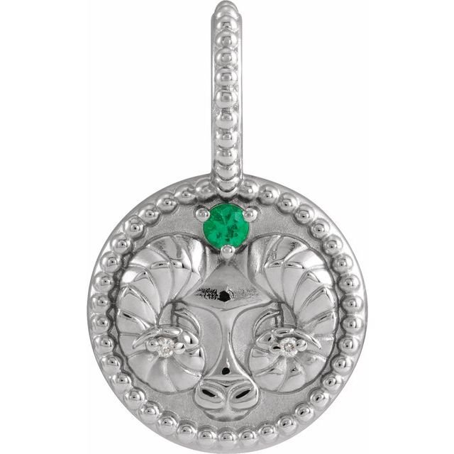 Platinum Natural Emerald & .005 Ctw Natural Diamond Aries Charm/pendant