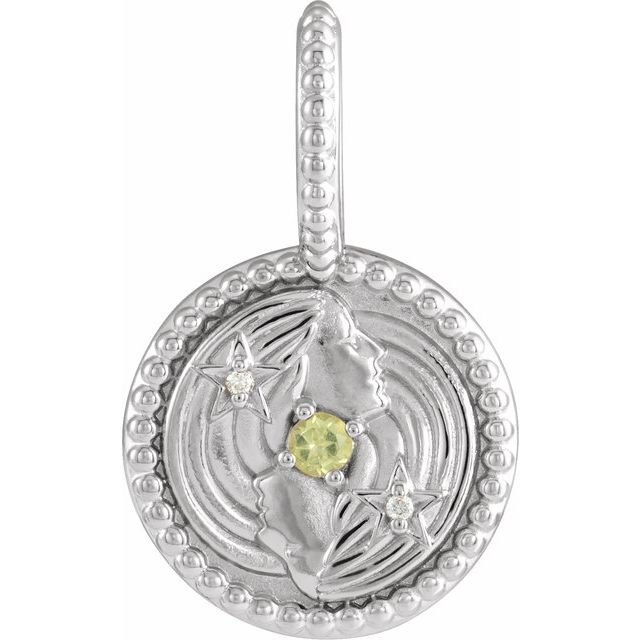 Platinum Natural Peridot & .005 Ctw Natural Diamond Gemini Charm/pendant