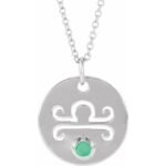 Sterling Silver Natural Green Chrysoprase Libra Zodiac 16-18′ Necklace