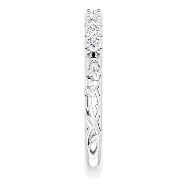 14k White 1/4 Ctw Natural Diamond Floral-inspired Anniversary Band