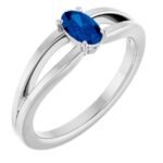 14k White Lab-grown Blue Sapphire Youth Solitaire Ring