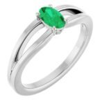 14k White Natural Emerald Youth Solitaire Ring